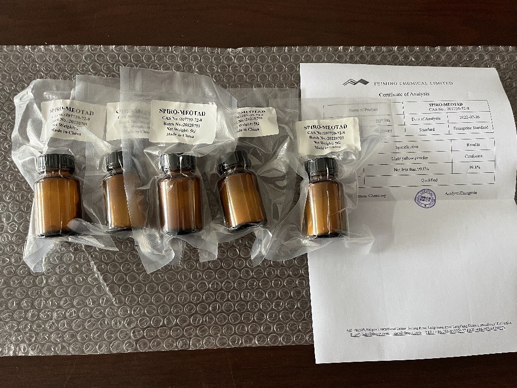 1Spiro-OMeTAD имеет высокую мобильность носителя, что означает, что в аккумуляторе заряд может быть передан из светочувствительного слоя на электрод быстрее,повышение эффективности аккумулятора.